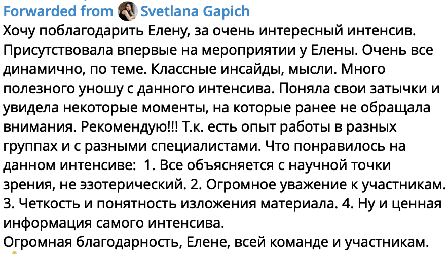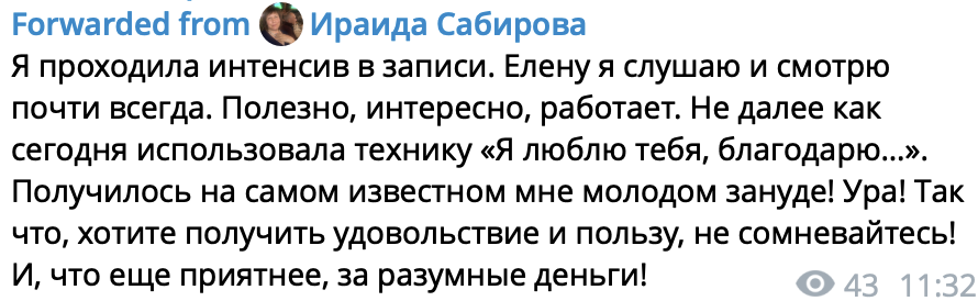 Подарки к этому пакету: ЛЕГЕНДАРНЫЙ ИНТЕНСИВ ЭНЕРГИЯ.СЕКС И ДЕНЬГИ - 4 МАСТЕР-КЛАССА В ЗАПИСИ ДЕНЬ 1. Из чего состоит ваша энергия? Возвращаем интерес к жизни ДЕНЬ 2. Секс и деньги - две стороны одной медали ДЕНЬ 3. Как вернуть страсть в ваш секс? ДЕНЬ 4. Отношение к деньгам как либидо: настройка подсознания на раскрытие финансового потока
